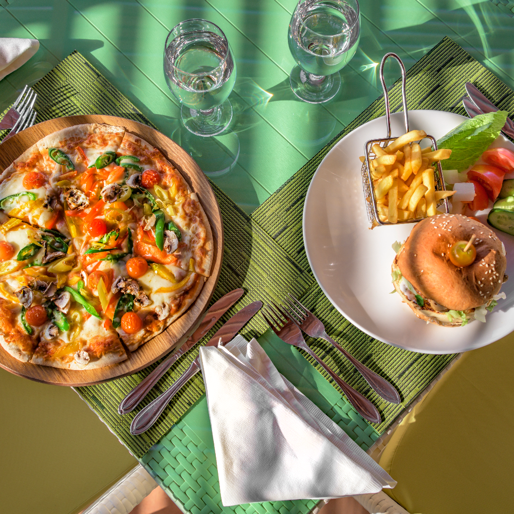 Overlooking the glistering shores of Tala Bay over the majestic sky; have a snack at BayWatch and