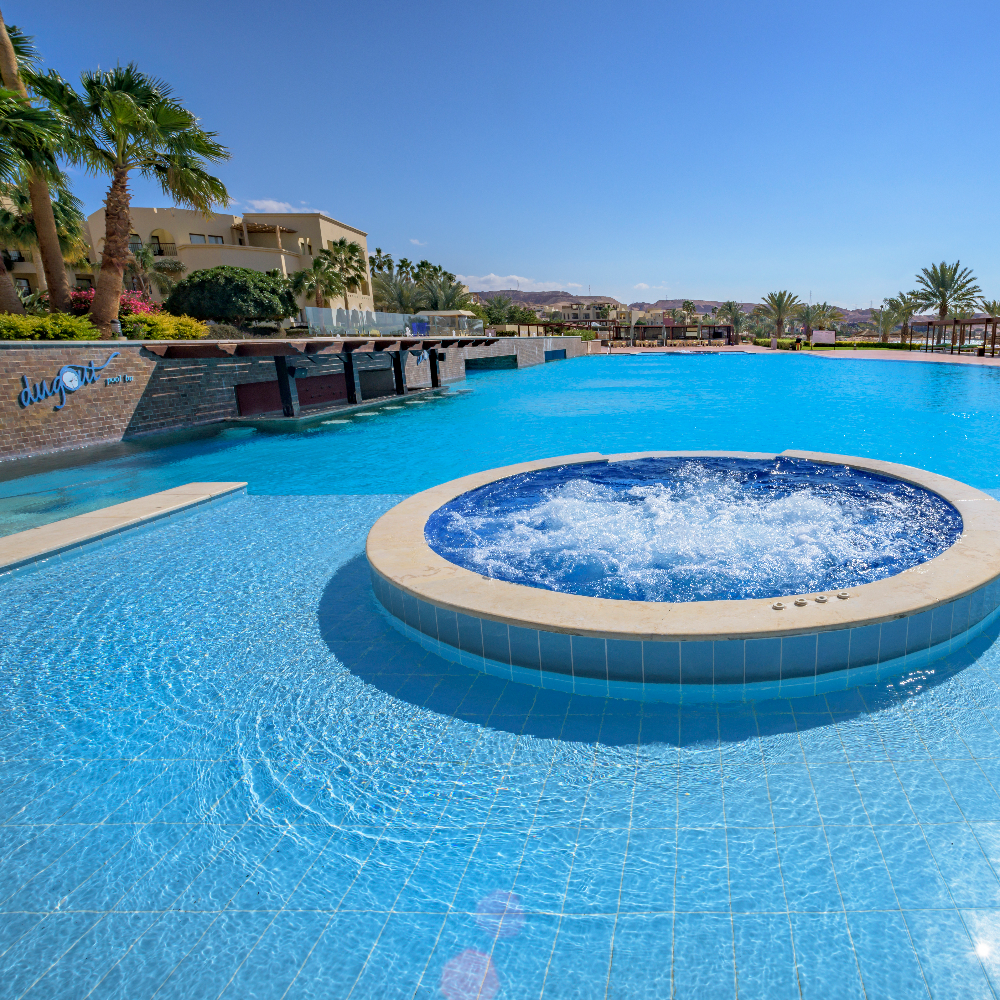 Immerse yourself in a unique experience at DugOut Pool Bar, nestled within the main pool. Operating