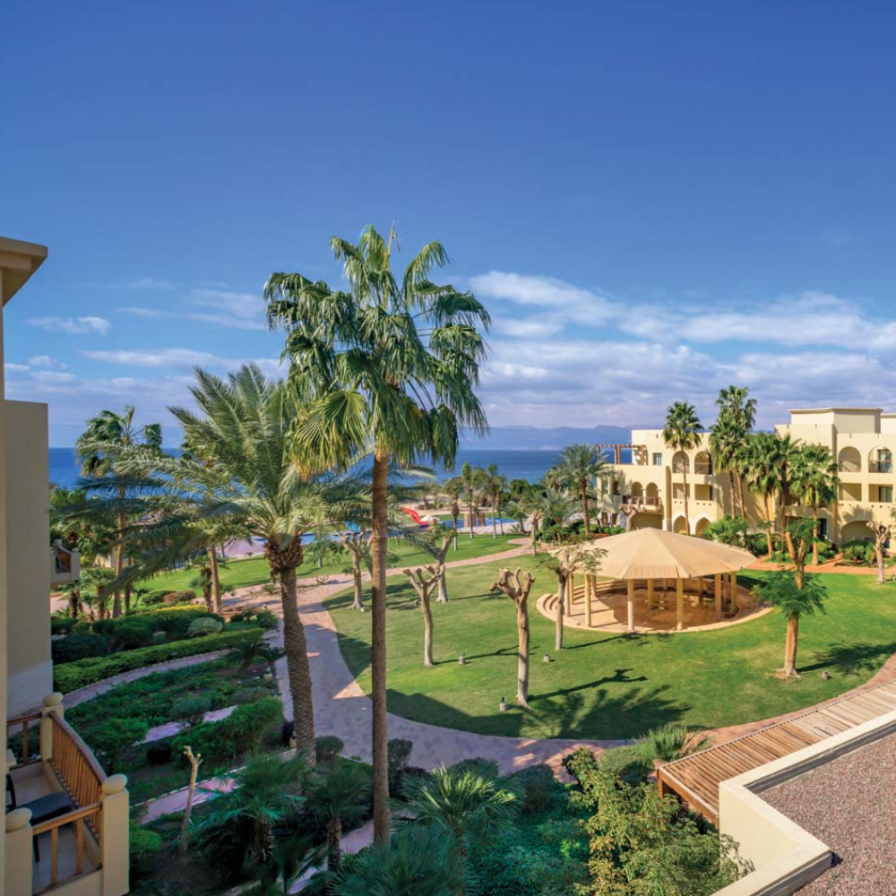 Grand Tala Bay Resort, Aqaba – Your Gateway to Unparalleled Luxury and Adventure Nestled on the serene banks of the mesmerizing Red Sea, Grand Tala Bay Resort is a haven of opulence and excitement. As the cornerstone of the illustrious Tala Bay, our resort stands as a testament to the epitome of lavishness and leisure. With a prime location in the heart of the new and highly esteemed luxury resorts destination, we offer an unforgettable escape surrounded by breathtaking landscapes, warm sands, and glistening waters. Our Deluxe Accommodations: Indulge in the lap of luxury within our deluxe rooms, each adorned with panoramic large windows that open onto a private balcony, some of which offer enchanting vistas of the Red Sea. Sink into the embrace of luxurious bedding and enjoy modern comforts, including free WiFi and a flat-screen TV, ensuring your stay is as relaxing as it is convenient. Culinary Delights: Discover a symphony of flavors at Aziab Restaurant, where the majestic Red Sea serves as the backdrop to a culinary journey spanning international and regional delicacies. Whether dining indoors or under the open sky, our outdoor setting enhances every bite. For a delightful sip and socializing, the Sunset Bar awaits with a curated selection of cocktails, wines, and light snacks, all while you take in the awe-inspiring sunset views. Unrivaled Leisure Activities: Dive into a world of adventure with a range of water sports activities on our private beach or take a refreshing dip in one of our five swimming pools. Embark on banana boat rides, guided diving expeditions with certified instructors, or explore vibrant coral reefs easily accessible from our shores. Grand Tala Bay Resort ensures every moment is filled with excitement and wonder. Gateway to Exploration: Embrace the opportunity to discover the region's treasures with a mere one-hour drive to the iconic Petra, a UNESCO World Heritage Site. Return to the lap of luxury after a day of exploration and immerse yourself in the grandeur of our resort, where tranquility and rejuvenation await. Immersive Experience: Our resort is an all-encompassing escape, offering not just luxurious accommodations and delectable dining but also an impressive collection of captivating restaurants and bars. Lounge by the magnificent beachfront, framed by golden mountains, or retreat to modern, stylish rooms designed to envelop you in comfort and elegance. Escape to Grand Tala Bay Resort, Aqaba, where the Red Sea's warm embrace meets the heights of luxury and the depths of adventure. Experience a destination where memories are made, and dreams come true.